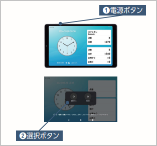 QUSEN PAY+にて、カスタマーディスプレイのタッチ操作ができない。最終更新:2025-09-24 00:00:00 再起動を行うとタッチ操作が改善される可能性があるため、以下の方法で再起動をして作動をご確認ください。(1) 本体の①電源ボタンを長押してください。(2) ②選択ボタンが表示されるので、その中から「再起動」を押下してください。 この記事は役立ちましたか?はいいいえ