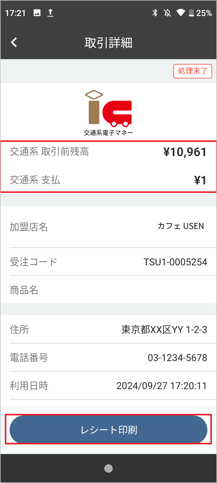 ④処理未了の取引詳細画面より、「取引前残高」と「支払」を確認します。
