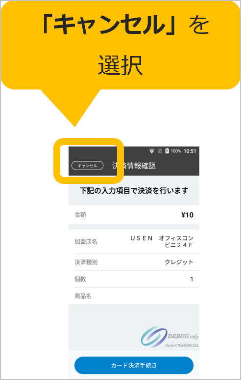 ※決済・取消が成功しているか不明な場合は、USEN PAYの決済履歴をご確認ください。