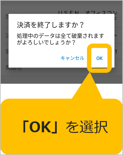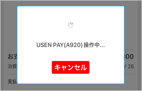 USENレジ画面に表示される「キャンセル」を押下してUSEN PAYのアプリで取引のキャンセル処理を行わず、別の会計を実施した際などに表示されます。