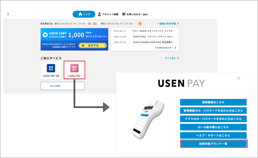 ※USEN PAY QR単体でご契約の場合は表示されません。QRアプリからご確認ください。
