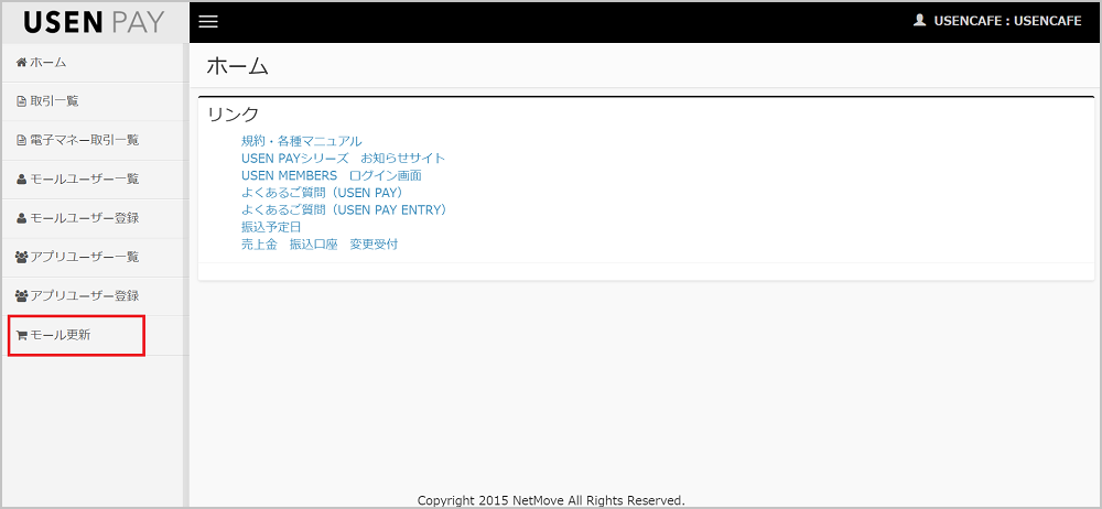 2.ホーム画面左側のメニューから「モール更新」を選択してください。3.レシートに記載する情報を入力し、保存を押下してください。