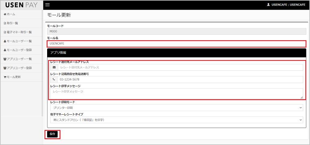 QUSEN PAY・USEN PAY ENTRYで、アプリやレシートに印字される店名・電話番号を変更したい。