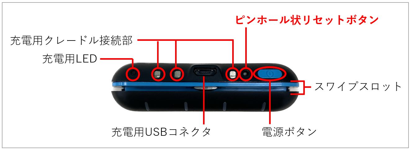 カードリーダー上部にある「ピンホール状リセットボタン」を押す。