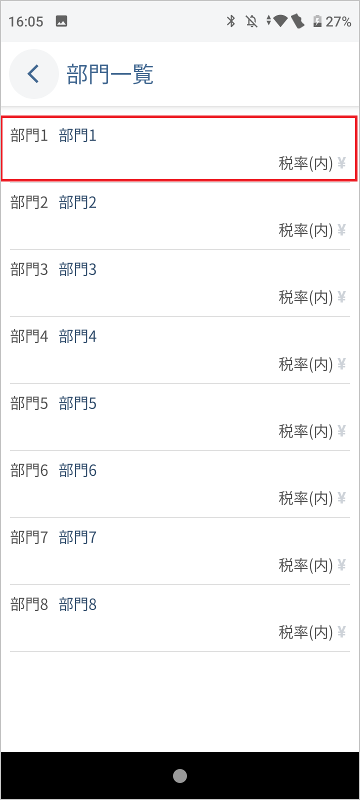 ②部門一覧が表示されます。設定したい部門番号を押下します。