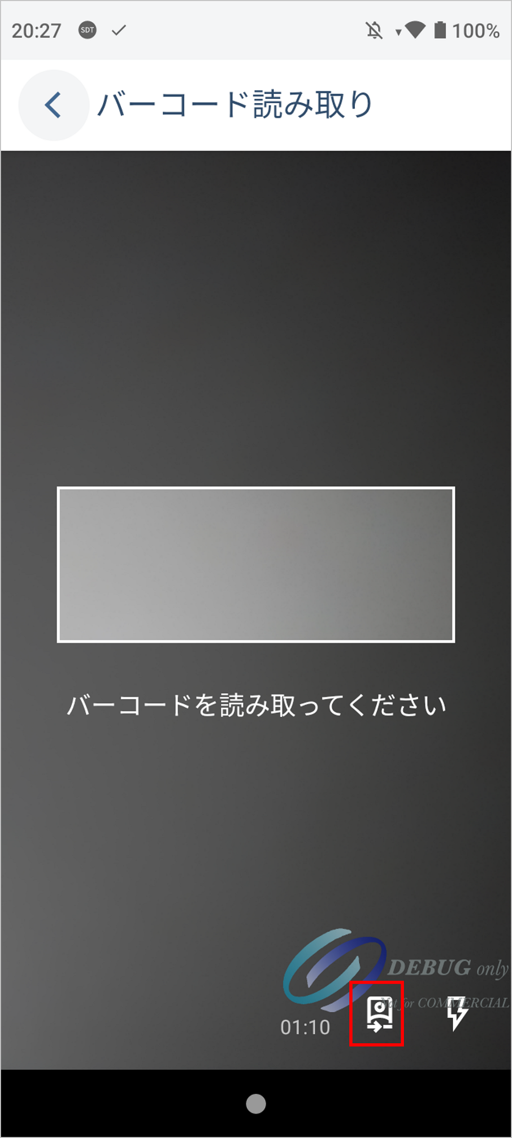※アイコン押下でカメラの前面/背面の選択が可能です。
