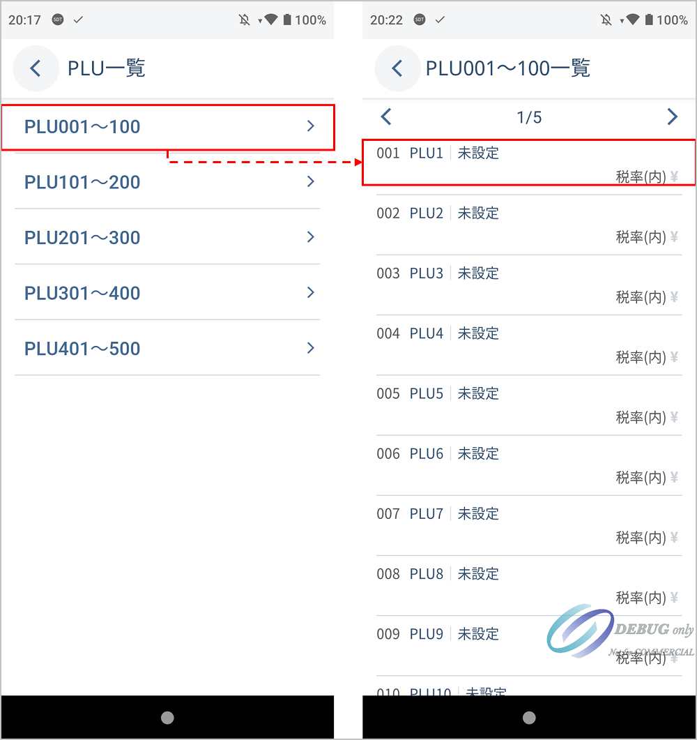 ②PLU一覧が表示されます。設定したいPLU番号を押下します。