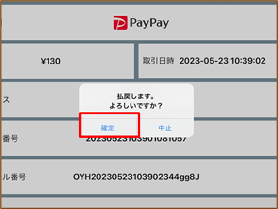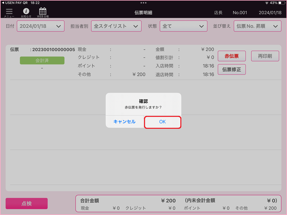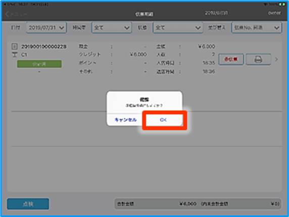 11.赤伝票発行確認画面で『OK』をタップしてください。