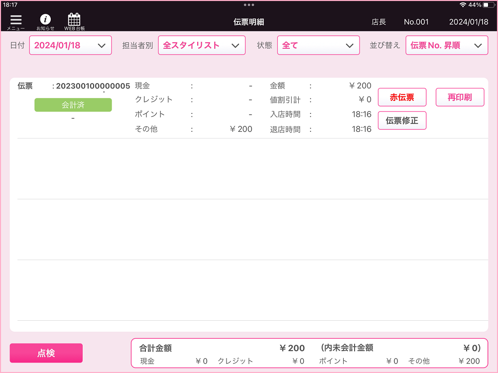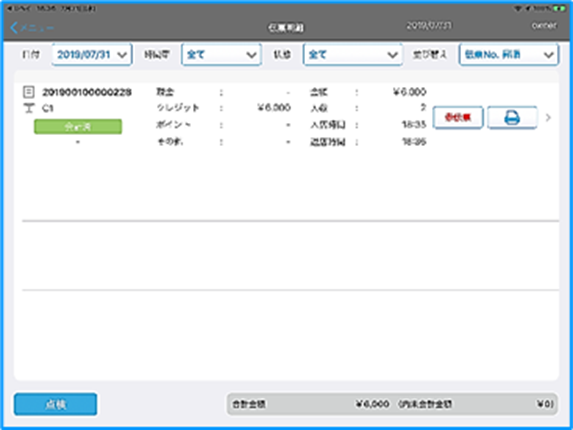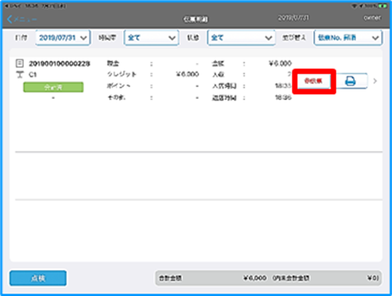 2.伝票明細画面で『決済取消』を行う伝票をタップしてください。