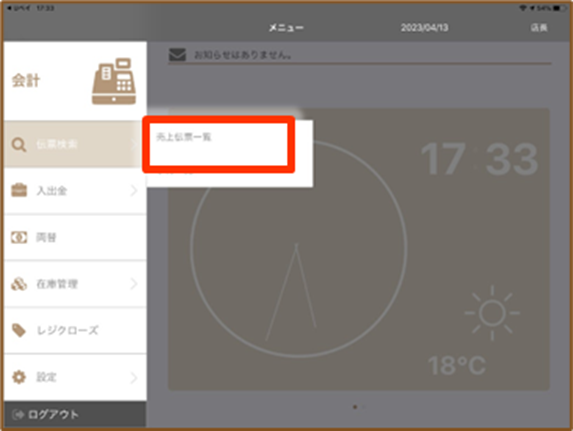 1.『売上伝票一覧』をタップしてください。