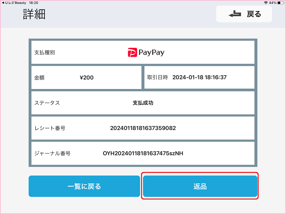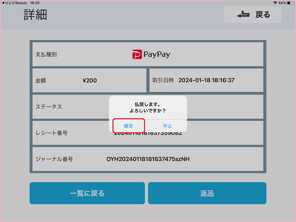 金額を確認の上『返品』をタップしてください。