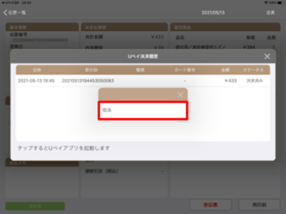 3.伝票明細画面で『決済取消』を行う伝票をタップしてください。