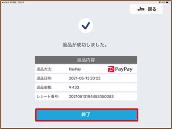 「終了」をタップすると、レジアプリに戻ります。