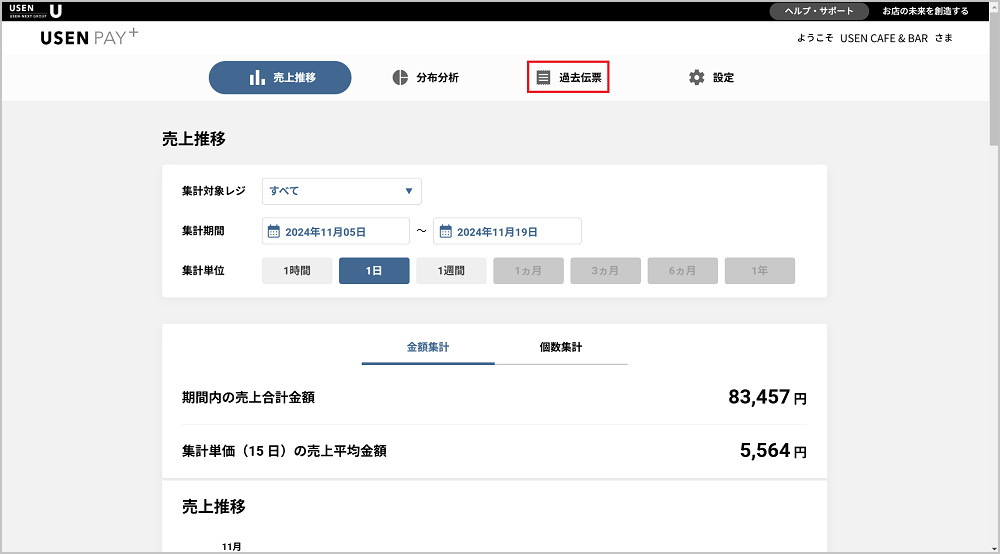 ※USEN PAY+のタイル > 売上集計からも遷移可能です。