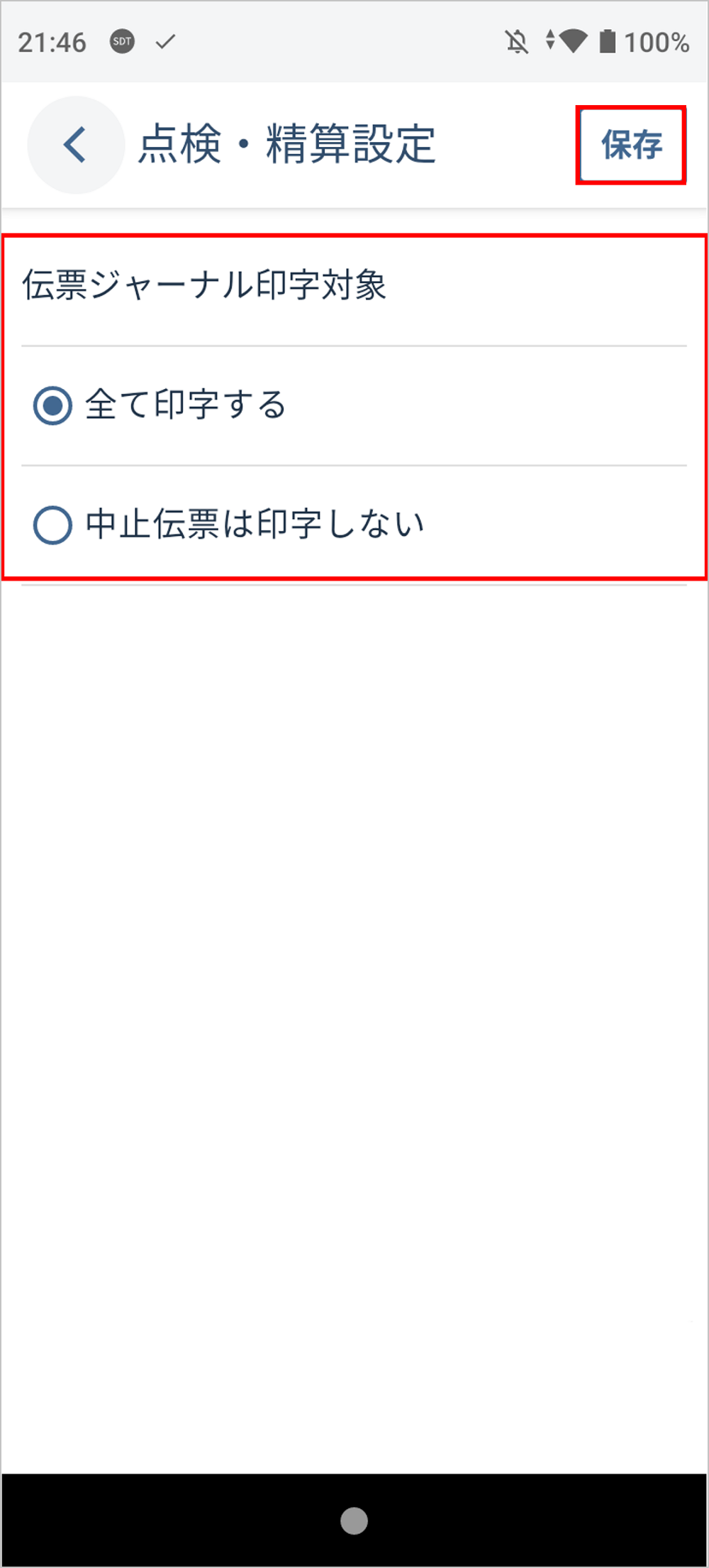 【精算時の伝票ジャーナルの中止レシート出力設定】