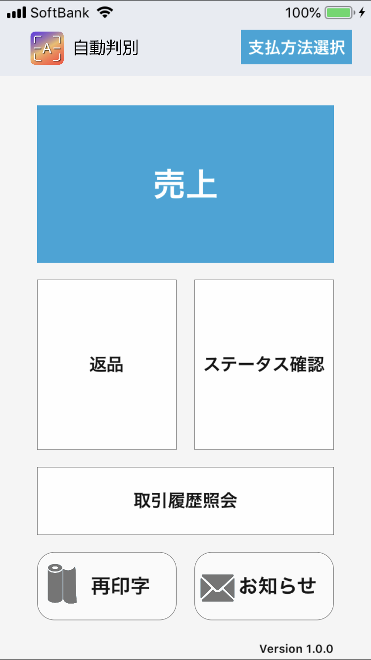 USEN PAY QR(旧:UペイQR)端末とアプリ使用端末(iPhone・iPad)をBluetoothでつないだ後、下記の手順で決済を行ってください。
