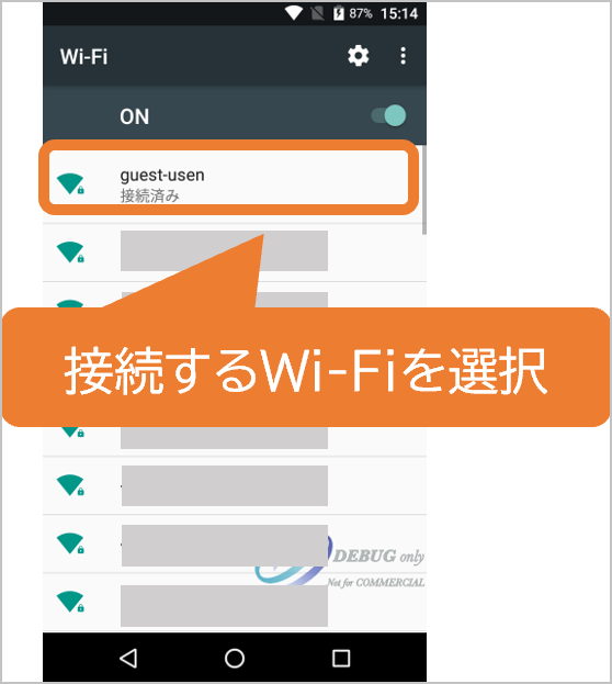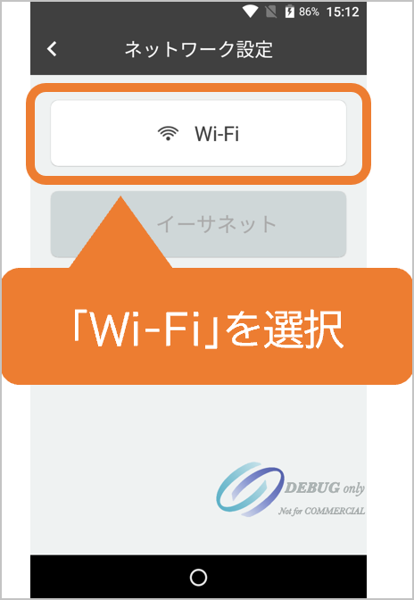 ④ネットワーク設定画面で「Wi-Fi」を選択。
