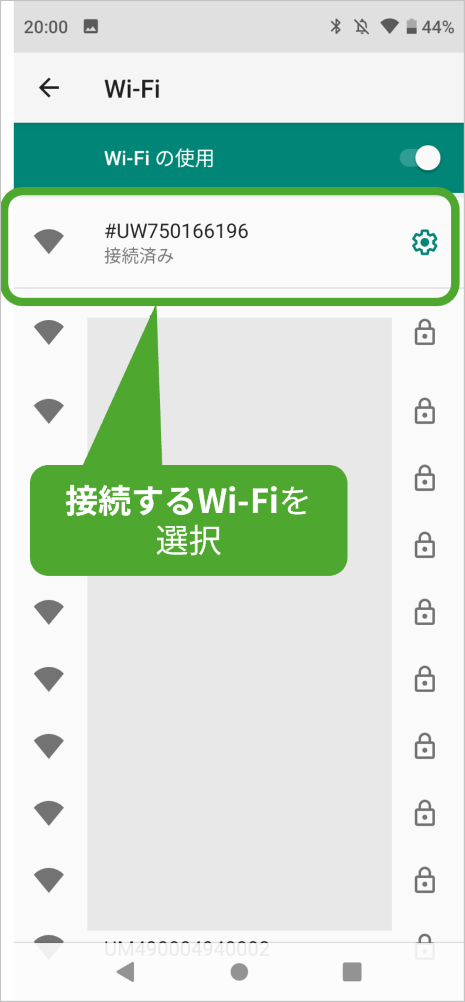 ※接続希望のWi-Fiが表示されない場合は、Wi-Fi画面下部の[+ネットワークを追加]にて追加を行ってください。